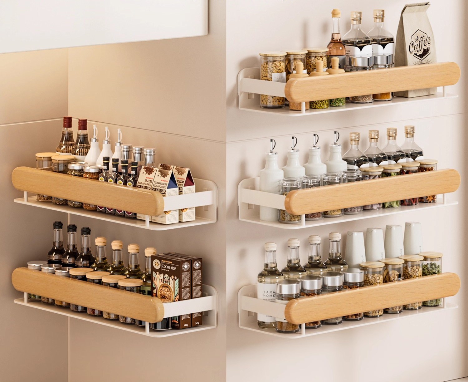 A falra szerelhető állványok közvetlenül a falra szerelhetők, akár a tűzhely fölé, akár a mosogató mellé, így a fűszeres üvegeket teljesen távol tartják a pulttól. A keskeny pulttal rendelkező kis konyhákban ez a kialakítás a pult 30–50%-át szabadíthatja fel – ez elegendő egy vágódeszka vagy egy kis edény elhelyezéséhez. Vannak azonban megfontolások is: például ha a fal csempéből vagy gipszkartonból van, akkor a beépítés stabil lesz? A legtöbb falra szerelhető állvány erős ragasztóval vagy tágulási csavarokkal rendelkezik; A ragasztós állványok sima csempefalakra alkalmasak, és 2-3 kg súlyt is elbírnak, míg a feszítőcsavarok jobbak a gipszkartonokhoz, biztosítva, hogy az állvány ne essen le még nehezebb fűszeres üvegekkel sem. Ezenkívül a falra szerelhető állványoknak ésszerű magasságban kell lenniük – túl magasan, és kényelmetlen a fűszerezés, túl alacsonyan, és elzárhatják a tűzhely kipufogóját. A kályha felett általában 50-60 cm magasság javasolt a könnyű hozzáférés érdekében.